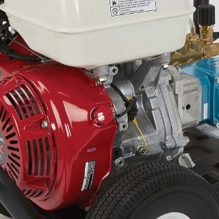 This NorthStar gas cold water pressure washer packs NorthStar power, durability, and reliability in a newly designed compact steel cart featuring new flat-free tires for easy portability and low maintenance. Equipped with an industrial-grade Honda GX390 engine, this model provides quiet, reliable performance and durability for blasting through mud, dirt, and debris faster and more easily at home or job sites — great for lawn and garden equipment, heavy-duty machinery, driveways, parking lots, patios, office buildings and much more.