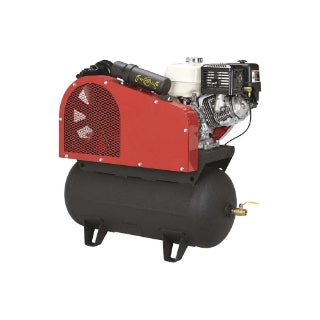 This heavy-duty NorthStar 30-gallon horizontal air compressor is powered by a quality Honda gasoline engine with a 3 Amp charging system. It has a belt-driven full cast iron two-stage pump with a V-type cylinder design for superior cooling, Low Vibration Technology (LVT) for smooth operation, and floating-type Swedish steel valves for long valve life. The crankshaft has bearings on both ends for excellent support. It also features a durable steel belt guard and liquid-filled pressure gauge for better accuracy and protection against pressure spikes.