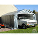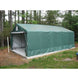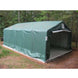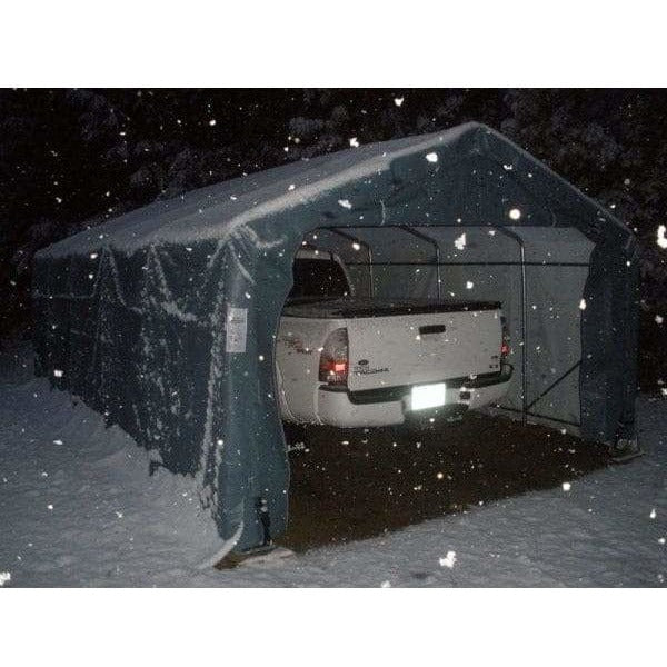 This instant garage measures 12 feet wide, 20 feet long, and 8 feet tall! The house-style shape provides additional side wall space for maximum headroom. It is an ideal storage option for car protection and storage, equipment and material storage, and workshop facilities. The double-zipper doors roll up and down for complete security, with a convenient drive-thru option.