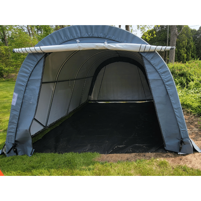 The 12x16x8 round style shelter makes the perfect small one car garage for your property. While this product is commonly used as an instant garage, it can offer outdoor protection for a variety of different uses. Extra storage, a small workshop area, and housing for your outdoor equipment are just some other ways our clients make use of this great product. It’s small enough to fit comfortably on any property, and it comes with two great color options.