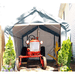 This instant garage measures in at eight feet wide by eight feet long and eight feet high. Typical uses include equipment and material storage, workshop areas, motorcycle or small vehicle shed, and more. The pre-drilled frames are easy-to-assemble. This shelter is also used frequently as a smoking shelter to protect employees or guests looking for a safe and comfortable place to have a smoke break. The main cover and doors are made of UV resistant and fire retardant ploy with fabric backing that has a long life. The double-zipper doors on both ends of the shelter give this instant garage good ventilation and make it easily accessible with drive-thru capabilities. It assembles in an hour and can be set up on asphalt, grass, wood, cement, drive and gravel.